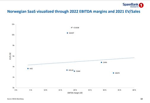 - Market cap is 900 mil NOK; they have net cash of 100 mil NOK, EV is 800 mil Nok