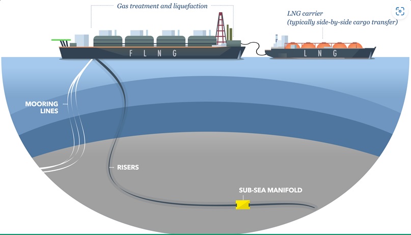 Floating liquefied natural gas vessels (FLNG) have been designed to facilitate the production, liquefaction, and storage of natural gas at sea. If you have a producing well at sea, you can add an FLNG vessel and liquefy the gas for transportation on the sea.