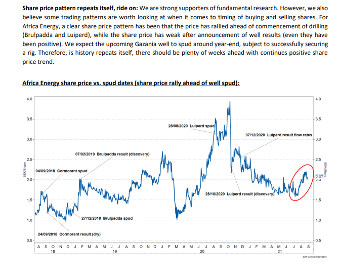 Africa Energy in the past traded well in exploration campaigns. I copy below a part of SpareBank research that describes this very well.